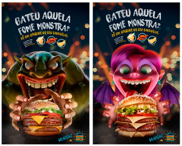 Pensando em sugerir mais opções para aqueles consumidores noturnos que buscam algo para matar a fome depois do horário de trabalho ou após aquela balada, o McDonald’s lança a promoção “McNight”, que ajuda os comilões da madrugada a darem um upgrade em seu sanduíche favorito. Para isso, o cliente que realizar o pedido de uma Mc Oferta com um hambúrguer extra, poderá escolher gratuitamente um acompanhamento de molho cheddar, queijo emmental ou bacon para cada carne adicionada. Para marcar o lançamento, a marca em conjunto com a DM9DDB apresenta o “monstro da fome”, um divertido personagem que sempre aparece atacando um dos sanduíches do McDonald’s na nova campanha da rede. As peças criadas pelo Studio D’ávila estarão presentes nos restaurantes e nas plataformas online da marca.