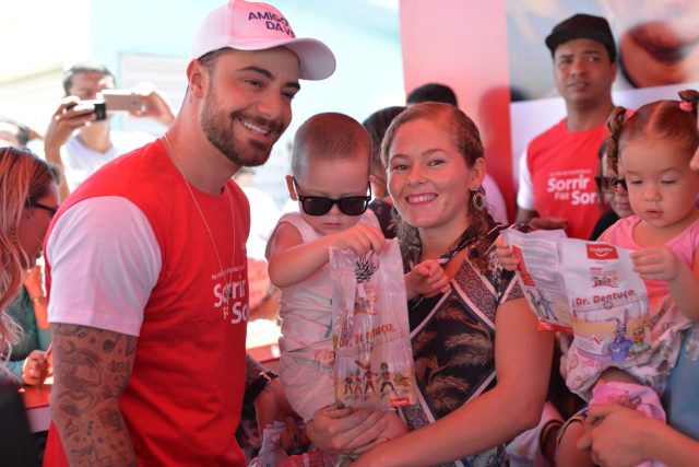 Embaixador da marca, o ator fez doações de kits de higiene bucal para toda a população de Ingazeira - PE