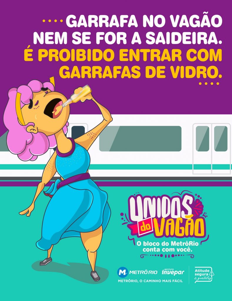 O MetrôRio, empresa do grupo Invepar, lança a campanha educativa para estimular o bom comportamento e as boas práticas dos clientes do metrô durante o carnaval. As peças da campanha abordam, de forma lúdica, temas como assédio, retenção de portas, lixo e uso de garrafas de vidros, além de outros exemplos de mau comportamento nas estações e nos trens. As ilustrações usam personagens ilustrativos, com uma linguagem jovem, alertando contra ações que podem, inclusive, colocar em risco e prejudicar outros passageiros. A campanha foi batizada de “Unidos do Vagão”.