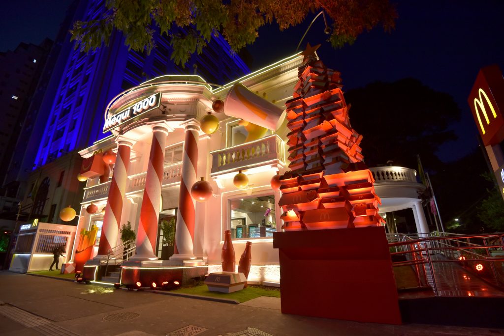 Celebrando um ano de atividade, o Méqui 1000, localizado em um casarão icônico da Avenida Paulista, em São Paulo, apresenta uma nova cenografia alusiva ao Natal onde se destacam a grande árvore natalina, formada por caixas de Big Mac, Quarterão e McLanche Feliz, que recepciona os clientes, e as carinhosas “mãos” gigantes que saem pelas janelas convidando quem passa pelo local para aproveitar o espaço. O projeto cenográfico procura refletir as lembranças afetivas do consumidor em relação à marca e estimular a interação do público com o espaço por meio de instalações temáticas e instagramáveis que estimulam o registro e compartilhamento desses momentos.