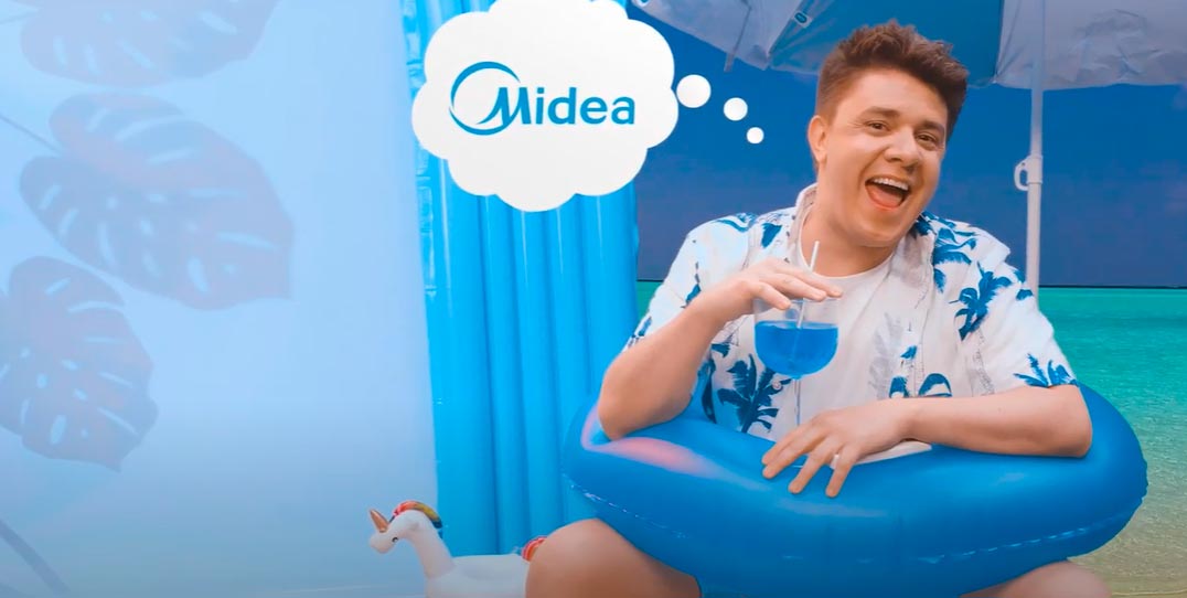 A campanha estrelada pelo ator e humorista Oscar Filho, remete aos benefícios dos aparelhos Midea e a praticidade de seu uso em qualquer lugar.