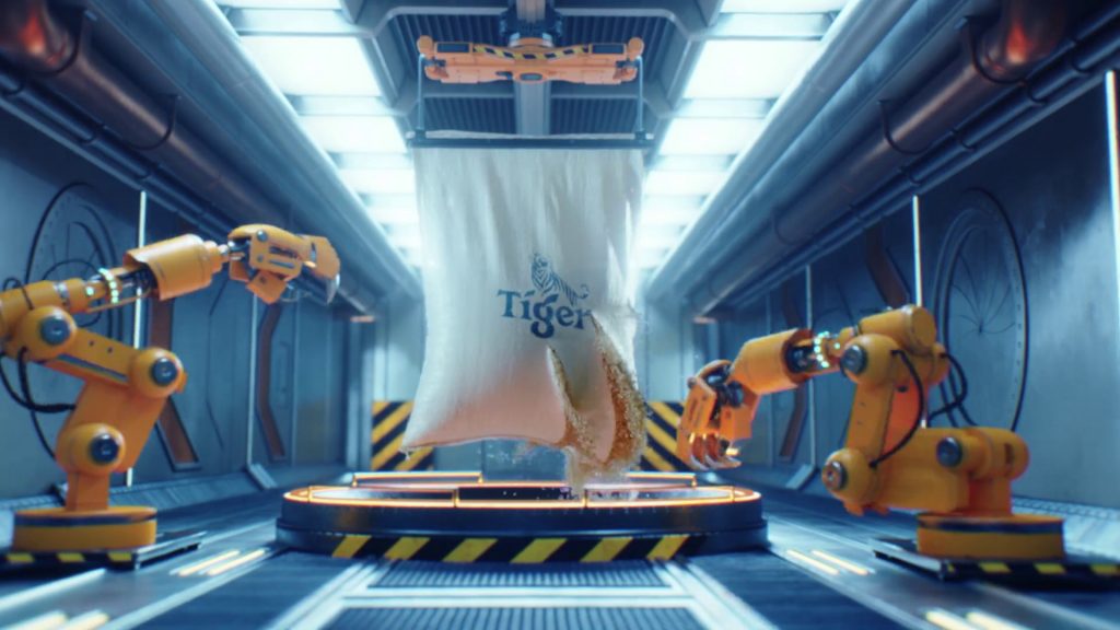 Ambientado em um cenário tecnológico de uma fábrica, o filme mostra de forma lúdica como a atitude e a garra da cerveja Puro Malte Tiger® estão presentes em seu processo de fabricação. O filme mescla cenas gravadas com modelagem em 3D.
