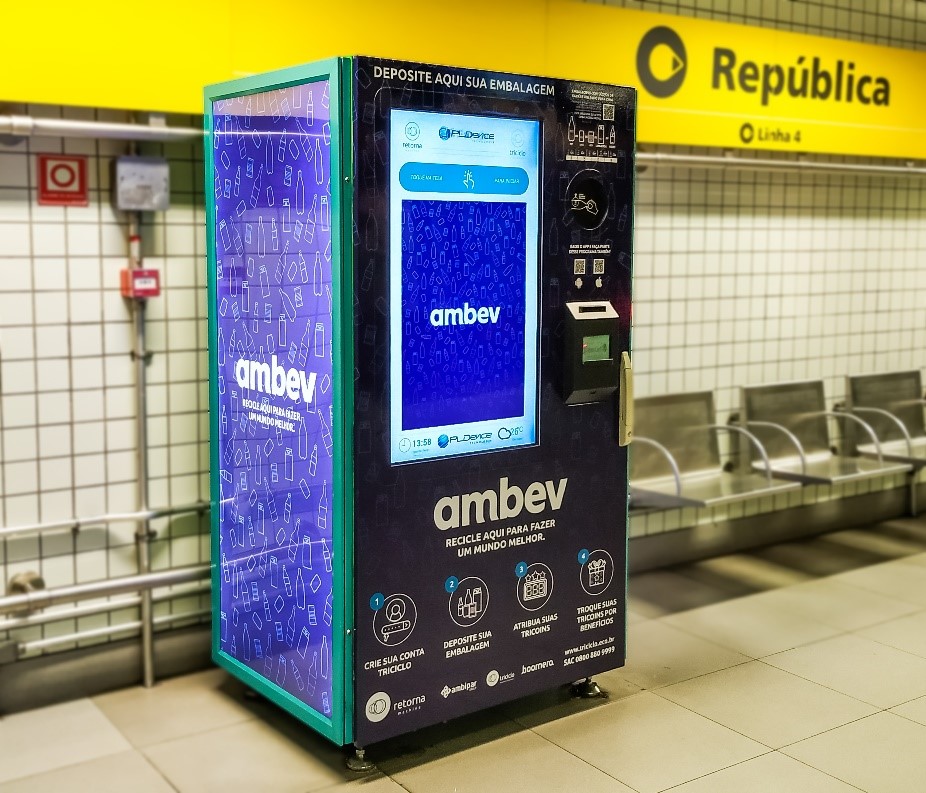 Já imaginou se embalagens recicláveis que seriam descartadas pudessem ser revertidas em recarga de vale transporte e celular pré-pago, bônus na fatura de energia elétrica ou desconto em livrarias? A Ambev e a Triciclo, vinculada ao Grupo Ambipar, instalaram 10 máquinas na cidade de São Paulo, conhecidas como Retorna Machine, para depósito de embalagens pós-consumo, a partir de um programa de fidelidade e recompensa.