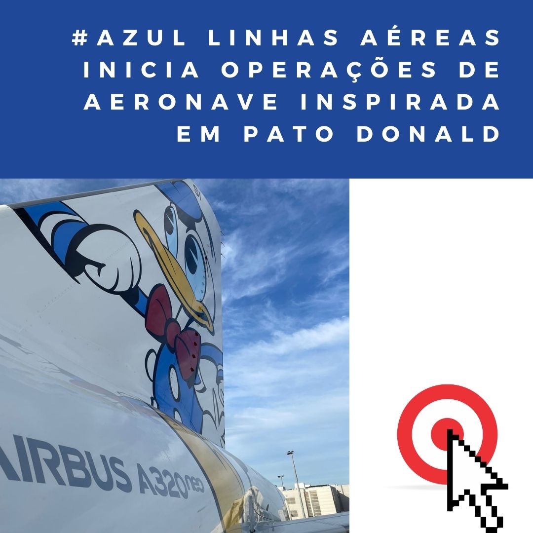 A Azul Linhas Aéreas realiza, neste sábado (28), os primeiros voos comerciais da aeronave inspirada em Pato Donald. Em seu primeiro dia, será possível encontrar o avião nos aeroportos de Viracopos (SP), Brasília (DF), Porto Seguro (BA), Goiânia (GO) e Sinop (MT). A aeronave é a terceira da série de aviões de “A Frota Mais Mágica do Mundo”, inspirada em personagens icônicos da Disney e na magia dos parques e resorts de Walt Disney World Resort, na Flórida.