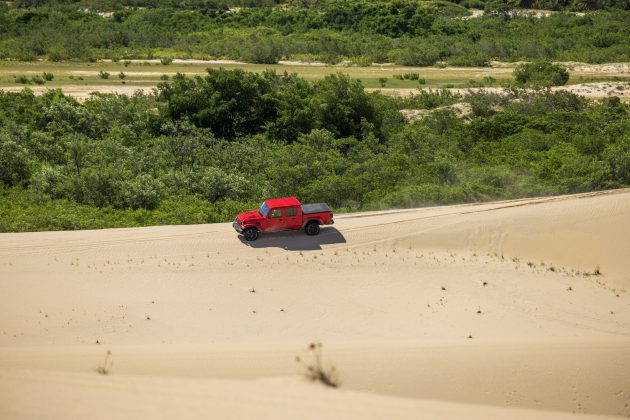 Disponível para o Brasil apenas na configuração Rubicon, a versão com maior capacidade off-road e que constitui a máxima expressão do legado e do DNA da marca Jeep, a picape Gladiator é uma fonte inesgotável de aventuras e sensações inéditas com o olhar do verdadeiro espírito Jeep. Ela é preparada para escalar rochedos, mas também para encarar as dunas mais altas do nordeste, com mais de 100 metros de altura. E atravessar os terrenos alagados da expedição não foi problema, já que o Gladiator conta com uma capacidade de imersão de 76cm @8km/h.