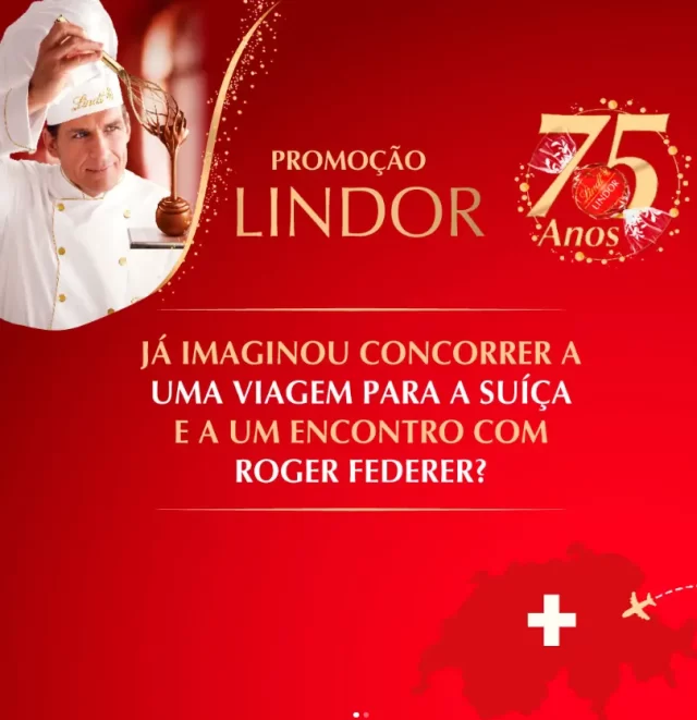 A Lindt, marca suíça de chocolates premium, está celebrando em grande estilo os 75 anos de sua icônica trufa LINDOR com uma campanha promocional de inverno imperdível! A partir de junho, os amantes de chocolate poderão participar de uma experiência deliciosa e inesquecível, com a chance de ganhar uma viagem à Suíça para conhecer a Home of Chocolate e encontrar o famoso tenista Roger Federer, além de concorrer a prêmios diários incríveis.