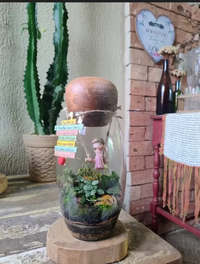 Os terrários e mini jardins do Jardim em Miniatura conquistaram o coração dos clientes, oferecendo não apenas um toque de natureza dentro de casa, mas também um presente especial para pessoas queridas. Cada projeto é uma obra de arte feita com plantas vivas, miniaturas encantadoras, pedras exóticas, cobertura em musgos, pedriscos e substrato orgânico, tudo disposto em cumbucas de barro rústicas ou vidros especiais. A atenção aos detalhes é o que torna cada composição única e adaptada às preferências dos clientes.