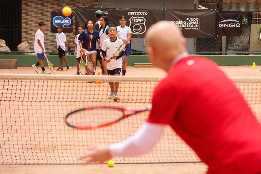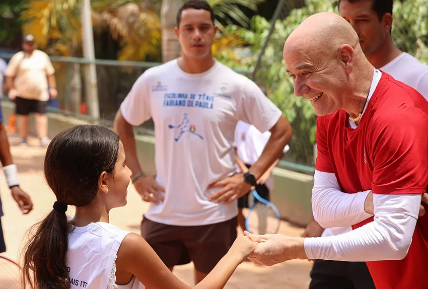 Durante a visita, Agassi bateu bola com as crianças, conversou com o treinador e acompanhou parte das atividades desenvolvidas no projeto. O campeão demonstrou entusiasmo ao interagir com os jovens atletas, reforçando a importância da persistência e do sonho grande.