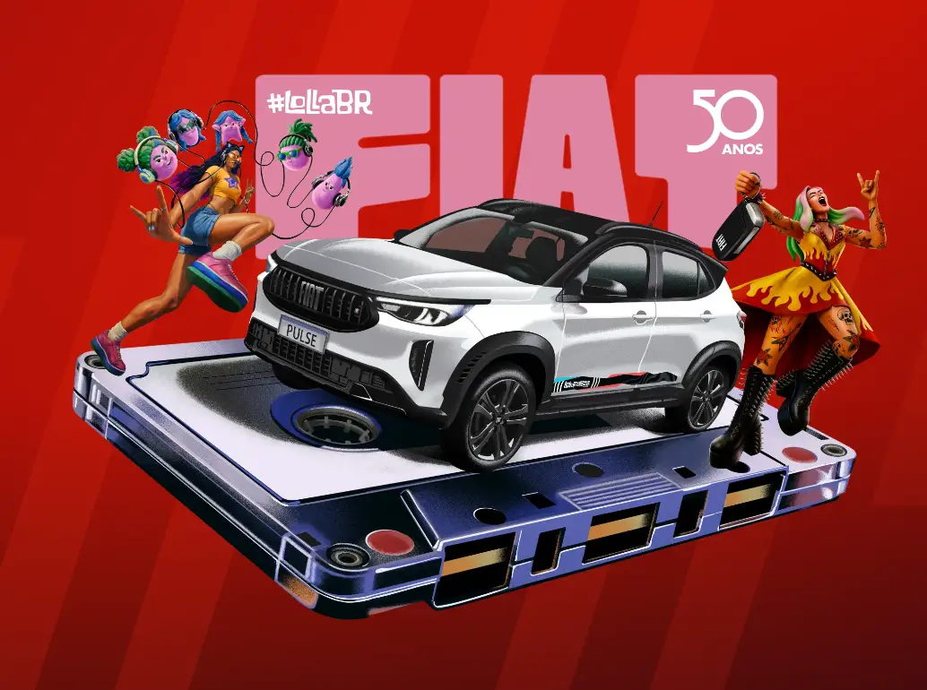A Fiat, patrocinadora master do Lollapalooza Brasil pelo segundo ano consecutivo, preparou uma série de ativações imersivas e exclusivas para o público do festival. Em um estande de 175 metros quadrados, a marca pretende transformar os fãs em protagonistas por meio de experiências interativas que conectam música, inovação e entretenimento.